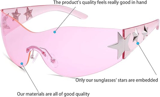 Rimless Y2K Sunglasses Star Wrap Around Glasses 2000S