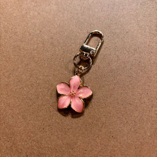 Schlüsselanhänger Blume aus Metall, goldfarben - pink