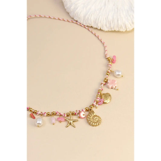Necklace with pink shells – mother-of-pearl and stainless steel