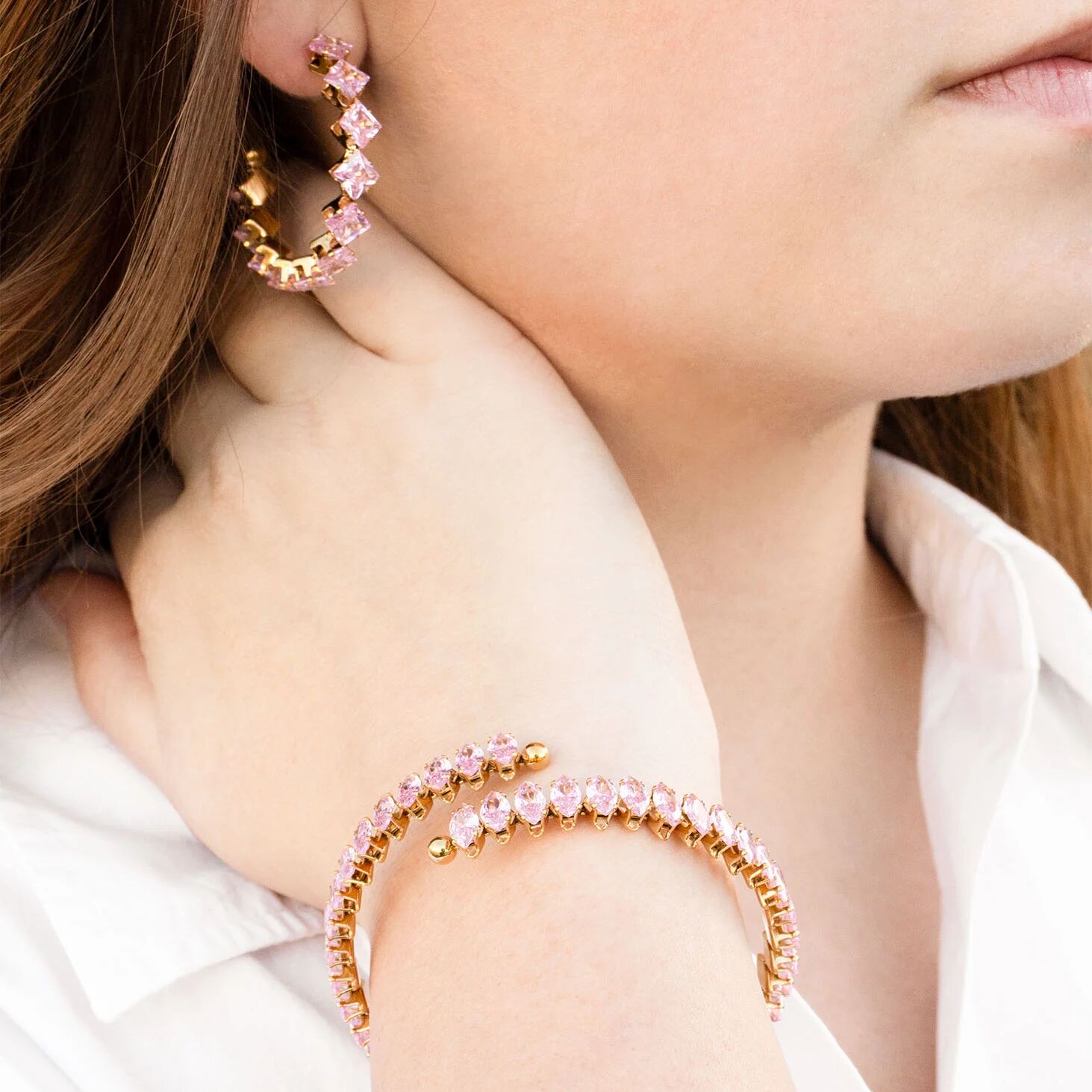 18K Gold PVD Edelstahl Armband mit rosa Stein