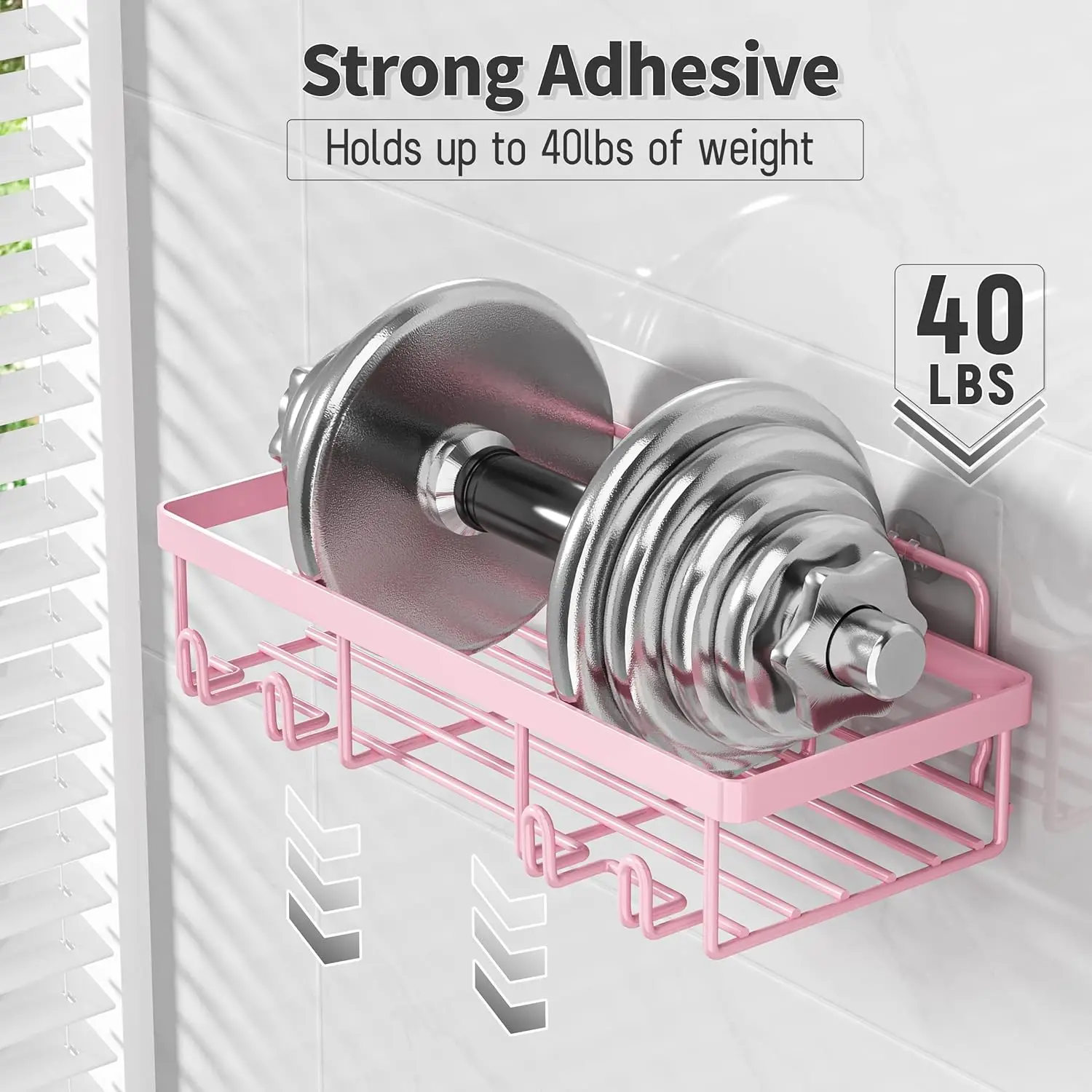 5-Pack Shower Caddy Organizer, Adhesive Pink Wall Shelf, Rustproof Stainless Steel Shampoo Holder