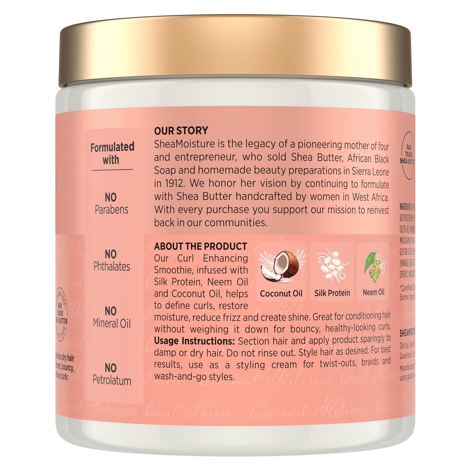 SheaMoisture Curl-Enhancing Smoothie Hair Cream, Coconut and Hibiscus for thick, curly hair, sulfate-free and paraben-free, curl cream, 590 ml